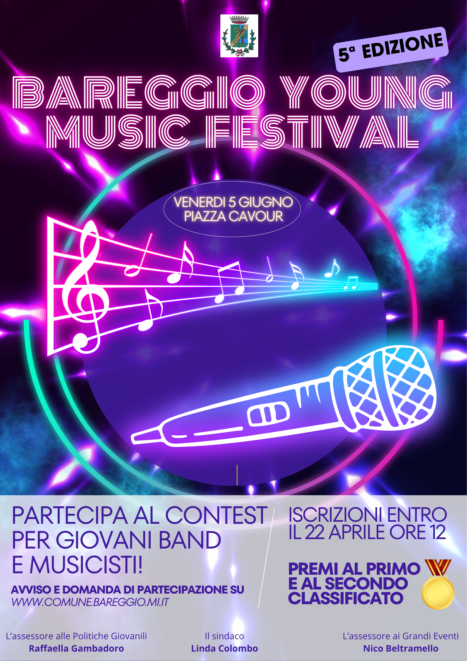 Manifestazione di interesse indirizzata a solisti e gruppi musicali non professionisti interessati ad esibirsi durante la 5^ edizione del BYM- Bareggio Young Music Festival previsto in data 5 giugno 2026 dalle ore 21:00 presso la Piazza Cavour durante la Festa delle Ciliegie.