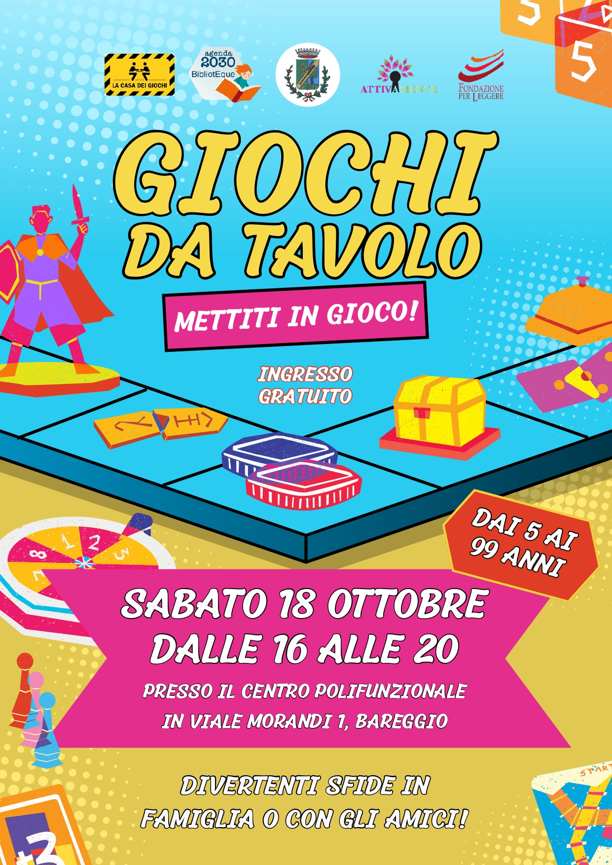 Sabato 18 ottobre dalle 16 alle 20, presso il Centro Polifunzionale M.L. King di Viale Morandi, potrai cimentarti in divertenti sfide in famiglia o con gli amici con giochi da tavolo. L'evento è organizzato, in compagnia di esperti ludologi, del progetto AttivaMente, in collaborazione con Fondazione per Leggere, La Casa dei Giochi, e Agenda 2030 BibliotEque.