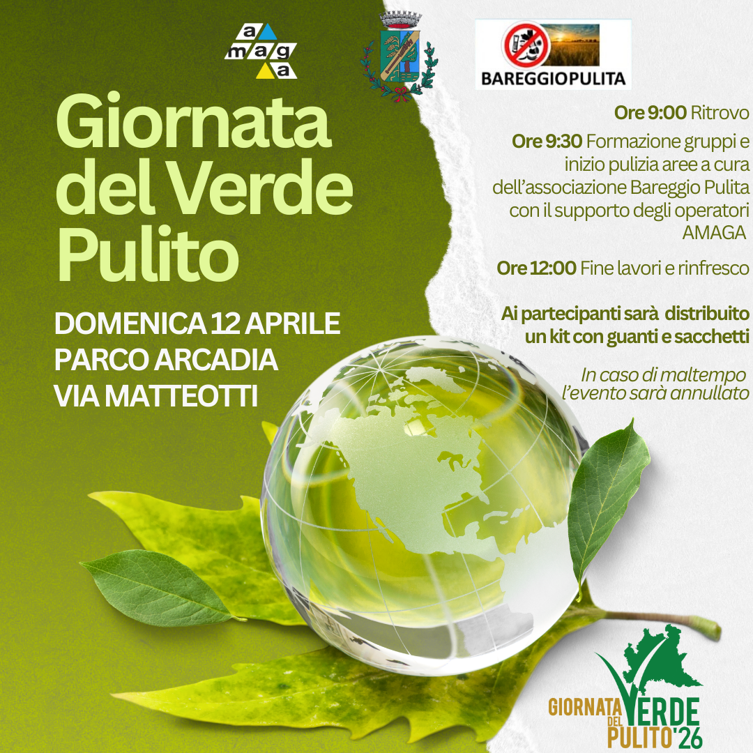 Il Comune di Bareggio, in collaborazione con AMAGA e le associazioni del territorio, invita tutta la cittadinanza alla giornata del verde pulito.