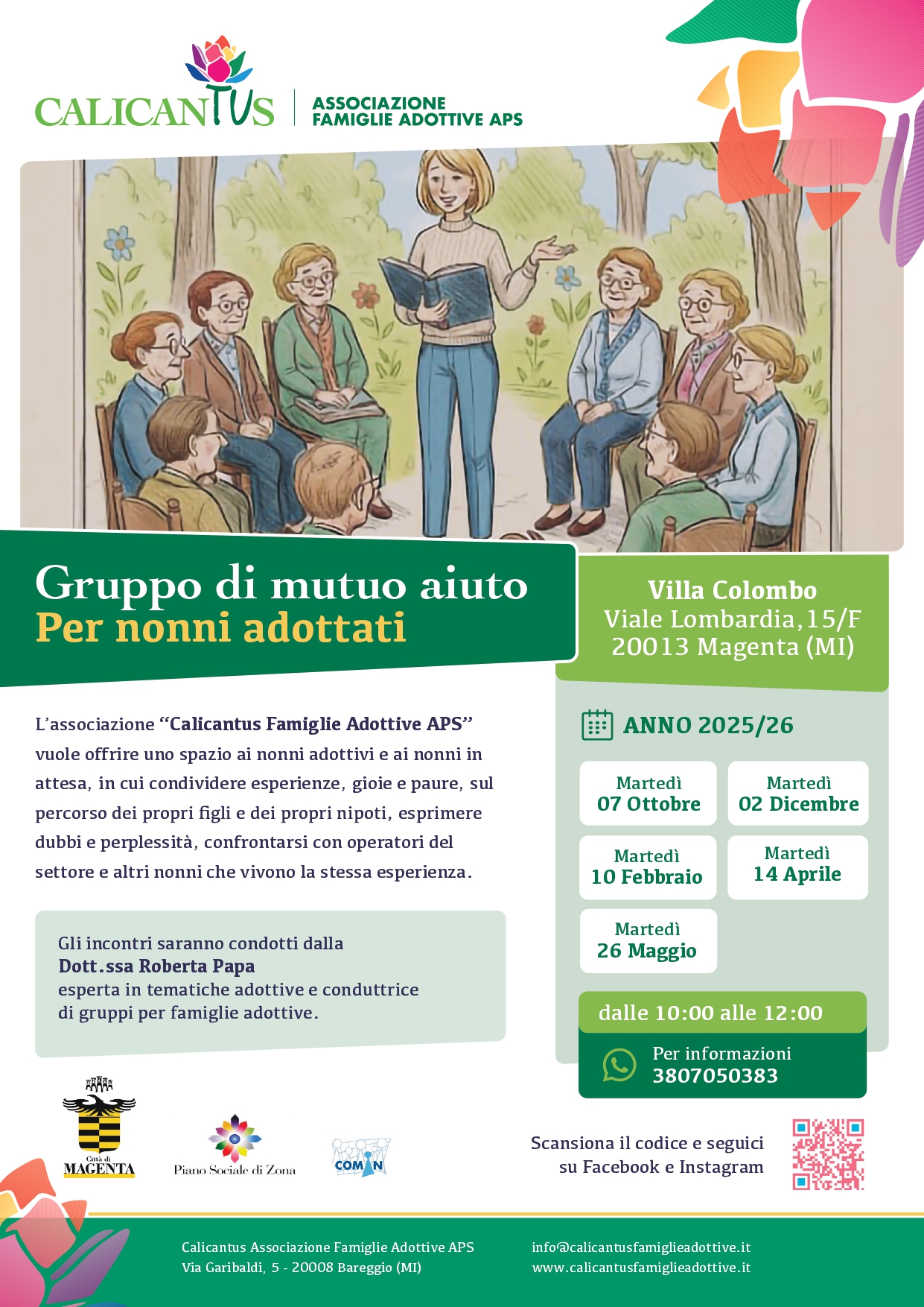 Gli incontri si terranno presso la Villa Colombo, in viale Lombardia n. 15/F a Magenta e saranno condotti dalla Dott.ssa Roberta Papa esperta in tematiche adottive e conduttrice di gruppi per famiglie adottive